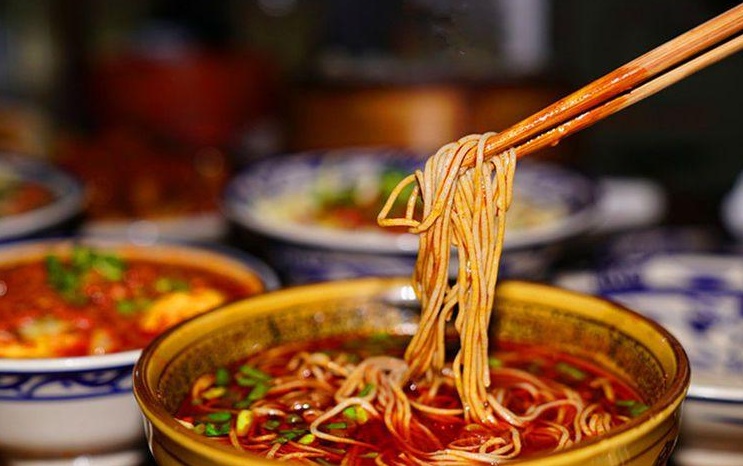 羊肉饸饹又稱蕎面饸饹,是北方面食三絕之一,與蘭州拉面、山西刀削面齊名,制作羊肉饸饹最重要的是羊肉臊子,選上好肥瘦相間的羊肉,切成細(xì)丁,小火煸炒,浸出油脂,加入花椒大料,慢火燉制數(shù)小時(shí),又以羊油和食用油燒制成紅油辣子入臊子湯。接著制作饸饹,饸饹以蕎面為主,摻入一定比例的小麥粉,加入蒿子增加韌性,和好的面團(tuán)通過有漏眼的“床子”壓成面條,直接入沸水煮熟,經(jīng)冷水過涼,淋水入碗回?zé)?,澆上羊肉臊子湯,漂一層辣子紅油,瞬間香味撲鼻,讓人垂涎欲滴。吃的時(shí)候滴入香醋,再加上一個(gè)芝麻燒餅,肉爛湯香,味道酸辣,光滑筋道,羊肉、饸饹、燒餅的香味交織在一起,在唇齒間彌漫,讓人回味無窮。