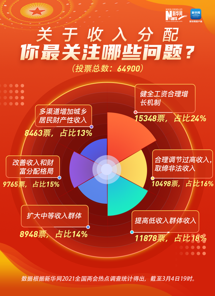 民之所望,政之所向。全國(guó)政協(xié)十三屆四次會(huì)議3月4日在北京開(kāi)幕,2021年全國(guó)兩會(huì)正式開(kāi)啟。今年你最關(guān)心什么事?在新華網(wǎng)前期推出的2021全國(guó)兩會(huì)熱點(diǎn)調(diào)查中,收入分配、鄉(xiāng)村振興、“十四五”規(guī)劃、疫情防控、就業(yè)創(chuàng)業(yè)、養(yǎng)老保障等成為網(wǎng)民關(guān)注的熱點(diǎn)話(huà)題。