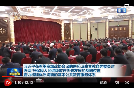 中共中央總書記、國家主席、中央軍委主席習(xí)近平3月6日下午看望了參加全國政協(xié)十三屆四次會議的醫(yī)藥衛(wèi)生界、教育界委員,并參加聯(lián)組會,聽取意見和建議。他強調(diào),要把保障人民健康放在優(yōu)先發(fā)展的戰(zhàn)略位置,堅持基本醫(yī)療衛(wèi)生事業(yè)的公益性,聚焦影響人民健康的重大疾病和主要問題,加快實施健康中國行動,織牢國家公共衛(wèi)生防護網(wǎng),推動公立醫(yī)院高質(zhì)量發(fā)展,為人民提供全方位全周期健康服務(wù)。要全面貫徹黨的教育方針,堅持社會主義辦學(xué)方向,堅持教育公益性原則,著力構(gòu)建優(yōu)質(zhì)均衡的基本公共教育服務(wù)體系,建設(shè)高質(zhì)量教育體系,辦好人民滿意的教育,培養(yǎng)德智體美勞全面發(fā)展的社會主義建設(shè)者和接班人。