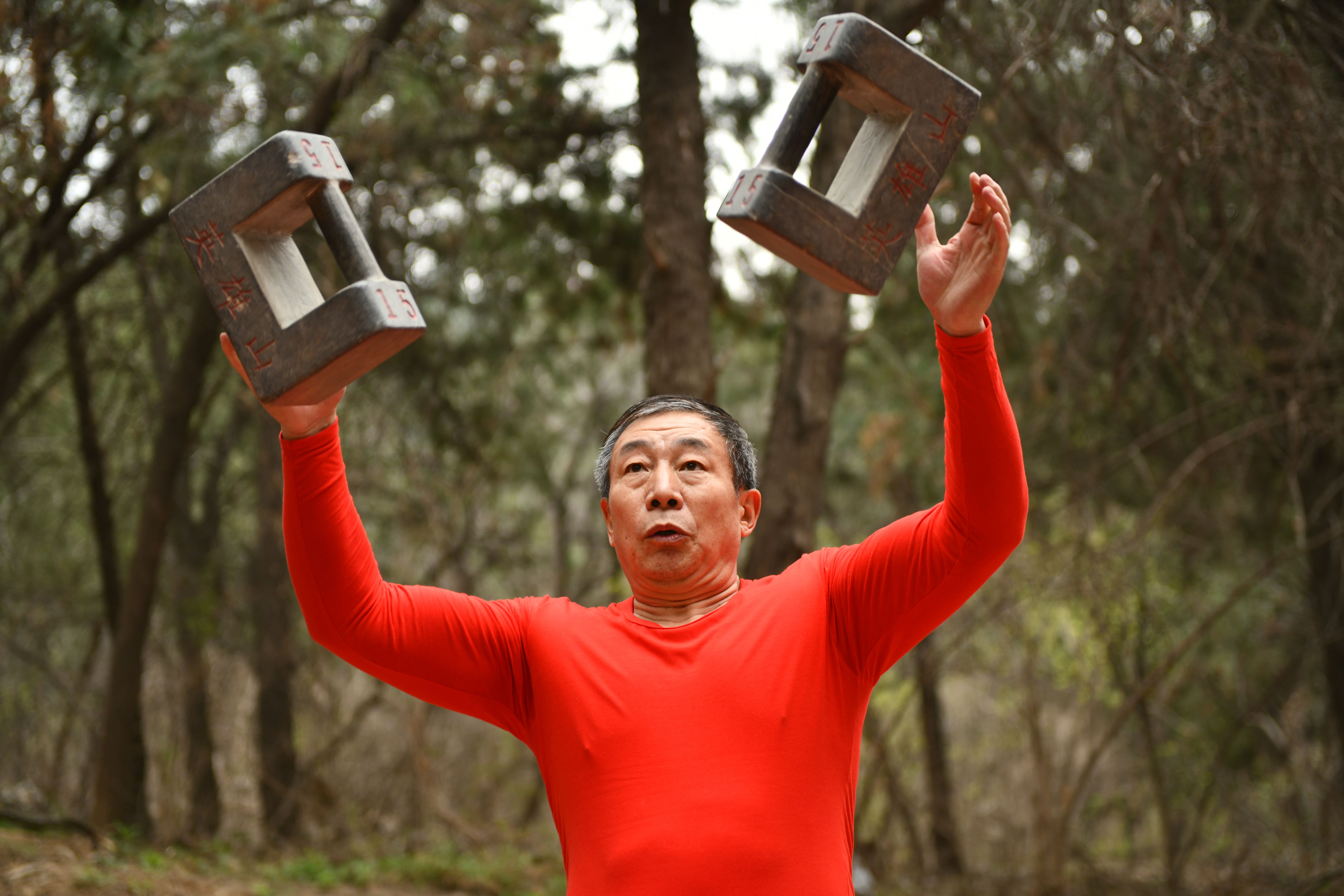 兩個(gè)用水泥澆灌的圓柱體,中間用根鐵棍相連就成了杠鈴;兩塊石塊固定在臺(tái)階下就是做俯臥撐的器具……沒有高端的健身器材,沒有資深的健身教練,卻有清新的空氣,滿滿的歡聲笑語,這里是位于山東省濟(jì)南市中心英雄山一角的“露天健身房”。