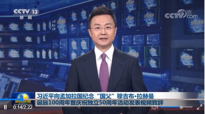 新華社北京3月17日電 3月17日,國(guó)家主席習(xí)近平向孟加拉國(guó)紀(jì)念“國(guó)父”穆吉布·拉赫曼誕辰100周年暨慶祝獨(dú)立50周年活動(dòng)發(fā)表視頻致辭,代表中國(guó)政府和中國(guó)人民向哈米德總統(tǒng)、哈西娜總理以及孟加拉國(guó)政府和人民,致以誠(chéng)摯的問(wèn)候和良好的祝愿。