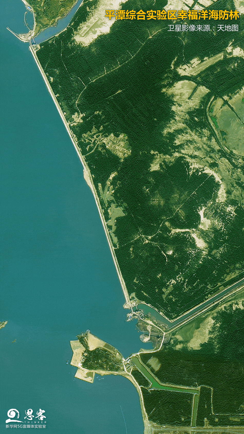 ▲平潭綜合實(shí)驗(yàn)區(qū)幸福洋海防林。衛(wèi)星影像來(lái)源:天地圖