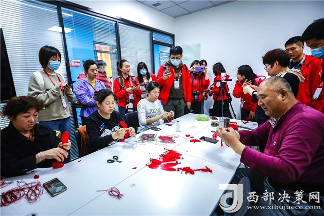 西部決策網(wǎng)訊 一折、一卷、六朵花瓣整齊羅列,細鐵絲緊緊繞圈固定,一朵火紅的手工花便成型了。“這個是我們的一些手工藝品,都是有延安特色的,如果你們想學的話,隨時來,我們這里免費培訓。”3月30日,在延安市寶塔區(qū)電商直播融合孵化服務(wù)中心的直播間里,60歲的退休工人董智玲正在直播間里給網(wǎng)友直播手工藝品制作,引來了眾多記者的圍觀。