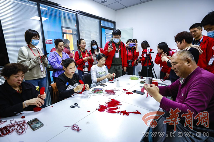 一折、一卷、六朵花瓣整齊羅列,細(xì)鐵絲緊緊繞圈固定,一朵火紅的手工花便成型了。“這個(gè)是我們的一些手工藝品,都是有延安特色的,如果你們想學(xué)的話,隨時(shí)來,我們這里免費(fèi)培訓(xùn)。”3月30日,在延安市寶塔區(qū)電商直播融合孵化服務(wù)中心的直播間里,60歲的退休工人董智玲正在直播間里給網(wǎng)友直播手工藝品制作,引來了眾多記者的圍觀。
