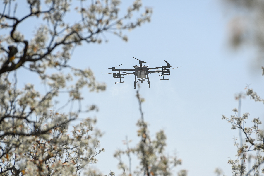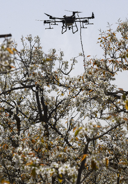 據(jù)中國農(nóng)業(yè)科學(xué)院蜜蜂研究所介紹,這種技術(shù)具有效率高、坐果勻和成本省等特點。1架無人機可在1小時內(nèi)為40畝果園授粉,效率是人工的50至60倍。采取蜂機協(xié)同作業(yè)高效液體授粉技術(shù)可使香梨每畝增產(chǎn)500公斤以上。目前,采用無人機給梨樹授粉成為越來越多梨農(nóng)的選擇。
