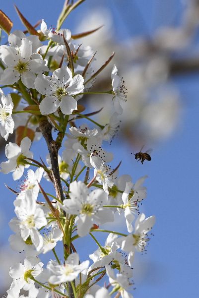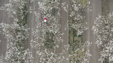 在新疆南疆等地,梨樹花期很短,且往往伴隨沙塵天氣,梨樹授粉作為梨產(chǎn)業(yè)發(fā)展中最為關(guān)鍵的一環(huán),以往通過人工授粉或者蜜蜂授粉進行。隨著人工成本不斷增加以及產(chǎn)業(yè)健康發(fā)展需要,以蜜蜂采集的高活性授粉用花粉聯(lián)合無人機噴施的蜂機協(xié)同作業(yè)高效液體授粉技術(shù)開始出現(xiàn)。