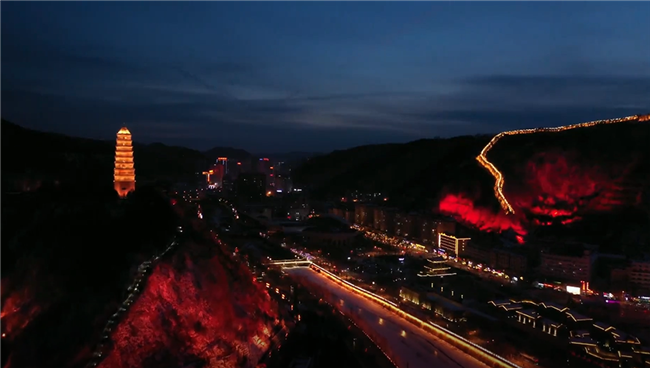 “民宿是第二屆夜經濟夜生活節(jié)的重要板塊。”2020年,延安舉辦夜經濟夜生活節(jié)期間,寶塔區(qū)副區(qū)長李延武就曾表示,寶塔民宿要堅持“特色化”,在彰顯紅色革命文化優(yōu)勢及綠色生態(tài)、黃土文化優(yōu)勢上下功夫,把延安民宿最優(yōu)、最亮的產品推介給廣大游客及消費者。夜幕下的延安。