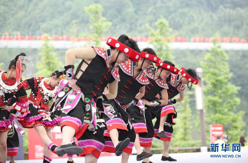 5月16日,演員在丹寨縣萬達(dá)小鎮(zhèn)非遺歌舞展演活動(dòng)上表演苗族木鼓舞。新華社發(fā)(黃曉海 攝)