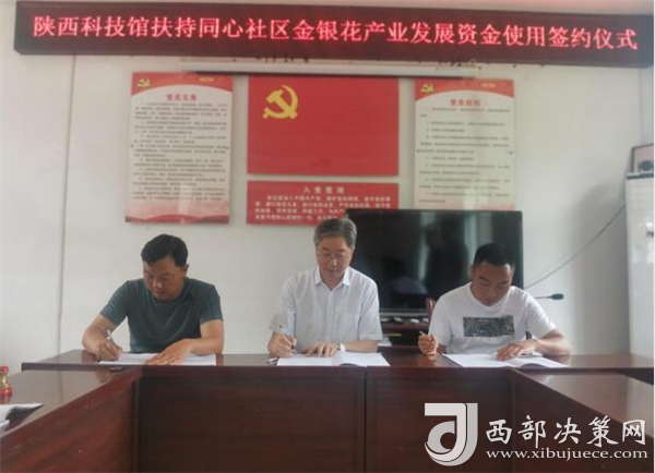 實地調(diào)研結(jié)束,在中廠鎮(zhèn)同心社區(qū)進(jìn)行了陜西科技館扶持同心社區(qū)金銀花產(chǎn)業(yè)發(fā)展資金使用框架協(xié)議簽約儀式。陜西科學(xué)技術(shù)館館長王曉東、同心社區(qū)書記王順明、白河縣沐之然農(nóng)業(yè)綜合開發(fā)有限公司監(jiān)事王利群共同簽署了銀花產(chǎn)業(yè)發(fā)展資金使用框架協(xié)議,標(biāo)志著以金銀花產(chǎn)業(yè)發(fā)展為龍頭鄉(xiāng)村振興工作進(jìn)入快速發(fā)展階段。