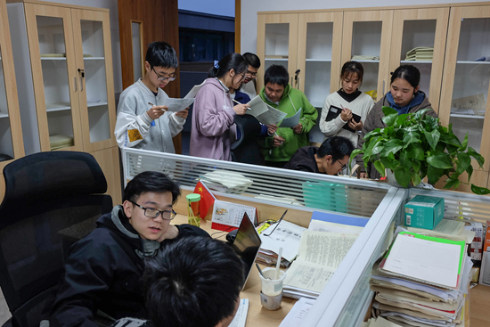 4月7日,晚自習(xí)時(shí),學(xué)生們擠在辦公室里找老師問(wèn)問(wèn)題。
