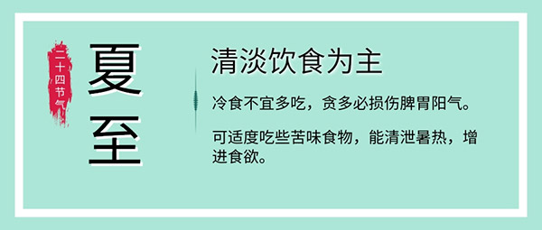 很多人有苦夏的問題,這是源于天氣炎熱,出汗較多,人體消化功能相對較弱。此時飲食宜清淡為主,多食苦味食物,如苦瓜、馬齒莧等,以祛暑清熱;同時,可多吃些生津之品,如西瓜、楊梅等,補(bǔ)充水分,祛除暑濕之邪;切忌過食辛辣熱性食物,以免助熱生火;食用冷食瓜果應(yīng)當(dāng)適可而止,不可過食,以免損傷脾胃。