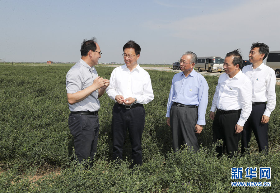 7月5日至6日,中共中央政治局常委、國(guó)務(wù)院副總理韓正先后在山東東營(yíng)、濟(jì)南調(diào)研。這是7月5日,韓正在黃河三角洲現(xiàn)代農(nóng)業(yè)技術(shù)創(chuàng)新中心考察鹽堿地生態(tài)保護(hù)和綜合利用情況。新華社記者 姚大偉 攝