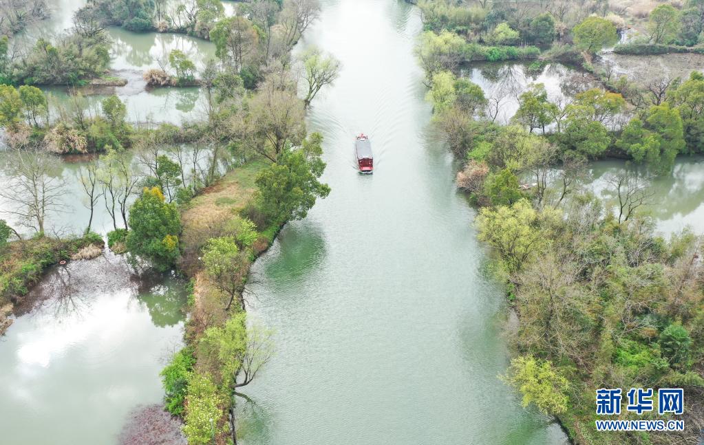 浙江杭州西溪濕地水道(2021年3月2日攝,無人機照片)。 新華社記者 翁忻旸 攝