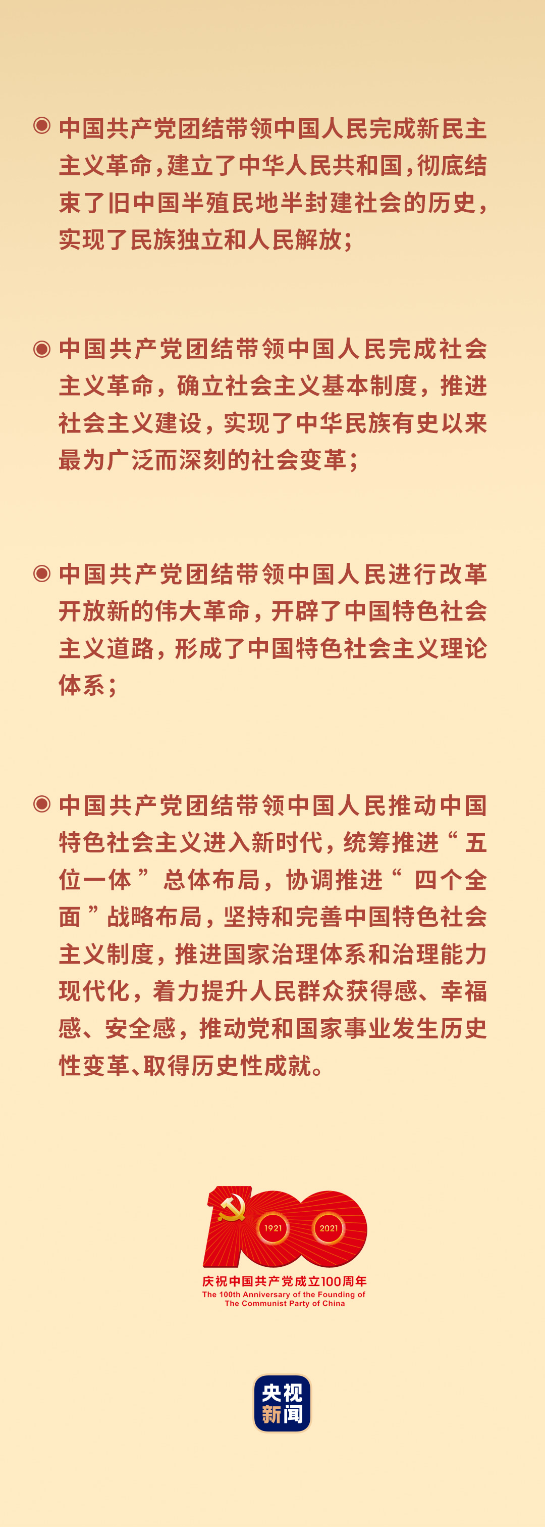 一百年來,中國共產(chǎn)黨團(tuán)結(jié)海內(nèi)外全體中華兒女,克服一個又一個困難,戰(zhàn)勝一場又一場挑戰(zhàn),在中華民族發(fā)展史和人類社會進(jìn)步史上書寫了壯麗篇章——