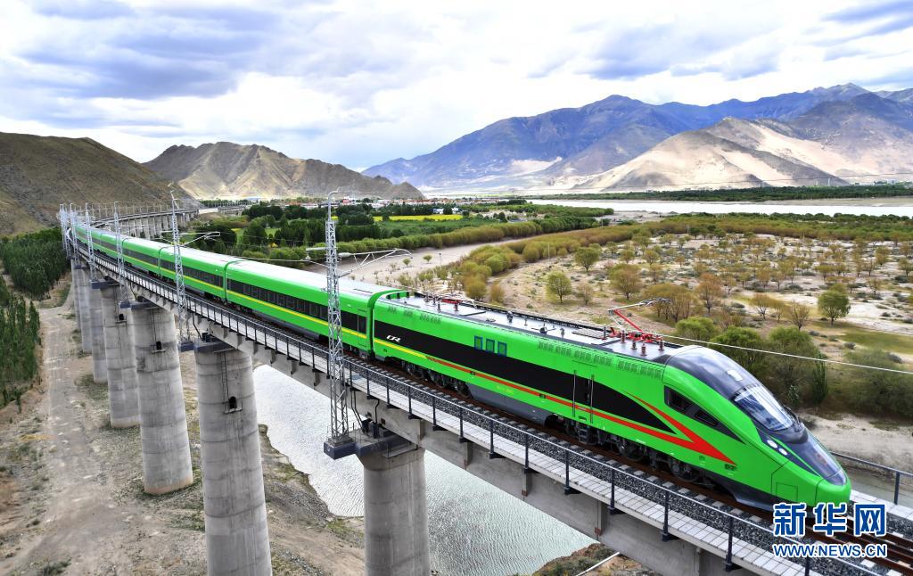 這是6月16日拍攝的行駛在拉林鐵路上的復(fù)興號(hào)列車。新華社記者 覺果 攝