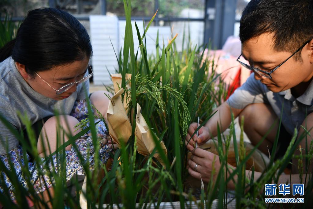 2020年1月11日,科研人員在位于海南省陵水黎族自治縣的華中農(nóng)業(yè)大學(xué)水稻南繁基地溫室內(nèi)工作。新華社記者 郭程 攝