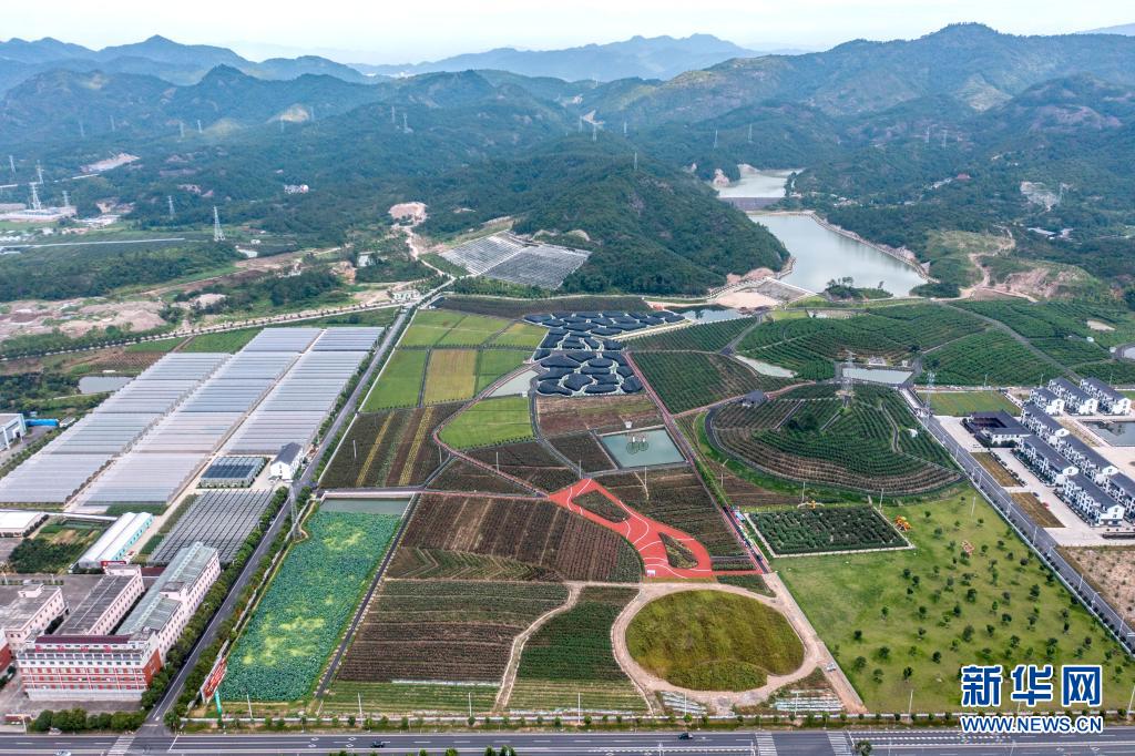 這是7月7日在浙江省東陽市花園村拍攝的現(xiàn)代農(nóng)業(yè)生態(tài)園(無人機(jī)照片)。新華社記者 徐昱 攝