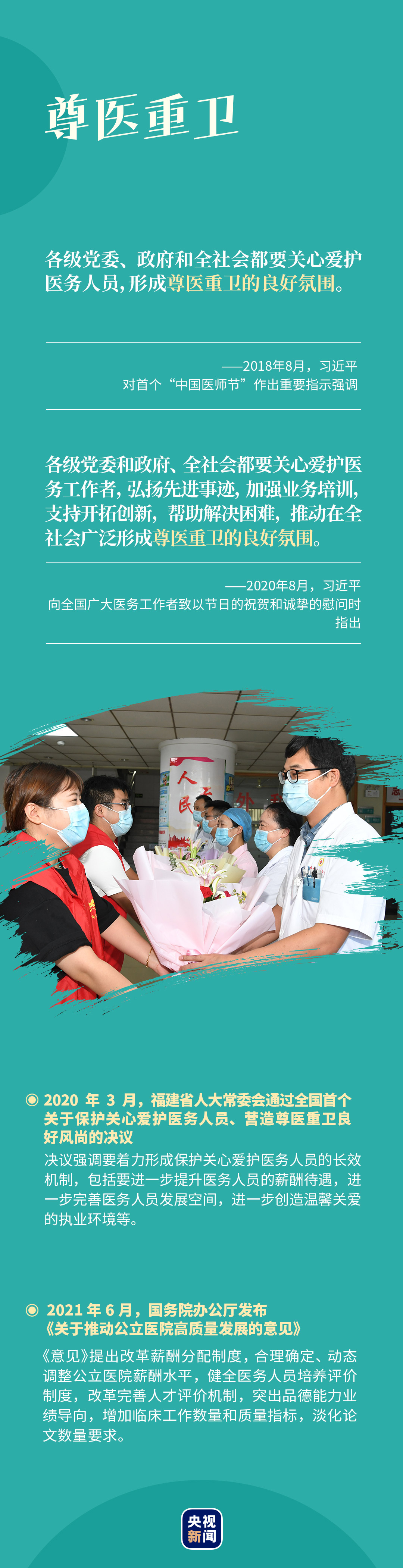 習(xí)近平總書記非常關(guān)心廣大醫(yī)務(wù)工作者,多次作出重要指示、向醫(yī)務(wù)工作者致以慰問,親切地稱贊他們?yōu)?ldquo;新時(shí)代最可愛的人”。