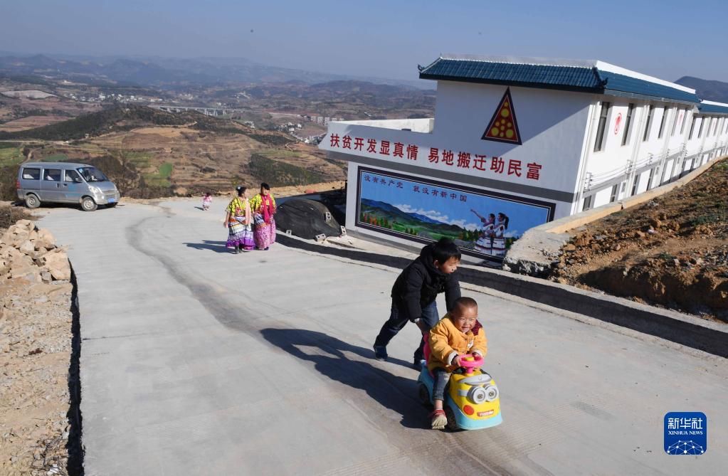 在云南省尋甸回族彝族自治縣河口鎮(zhèn)窯灣子村,兩名兒童在混凝土硬化路上玩耍(2018年2月20日攝)。新華社記者 楊宗友 攝