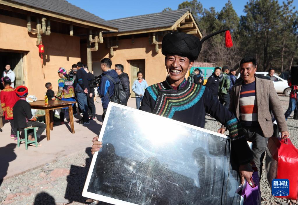 在四川省昭覺縣三河村的易地扶貧安置點(diǎn),彝族群眾馬海日聰喜搬新居(2019年2月11日攝)。新華社記者 江宏景 攝