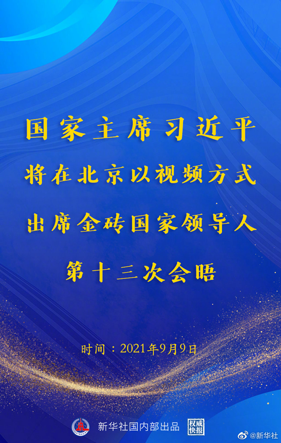外交部發(fā)言人華春瑩9月8日宣布:應印度總理莫迪邀請,國家主席習近平將于9月9日在北京以視頻方式出席金磚國家領導人第十三次會晤。