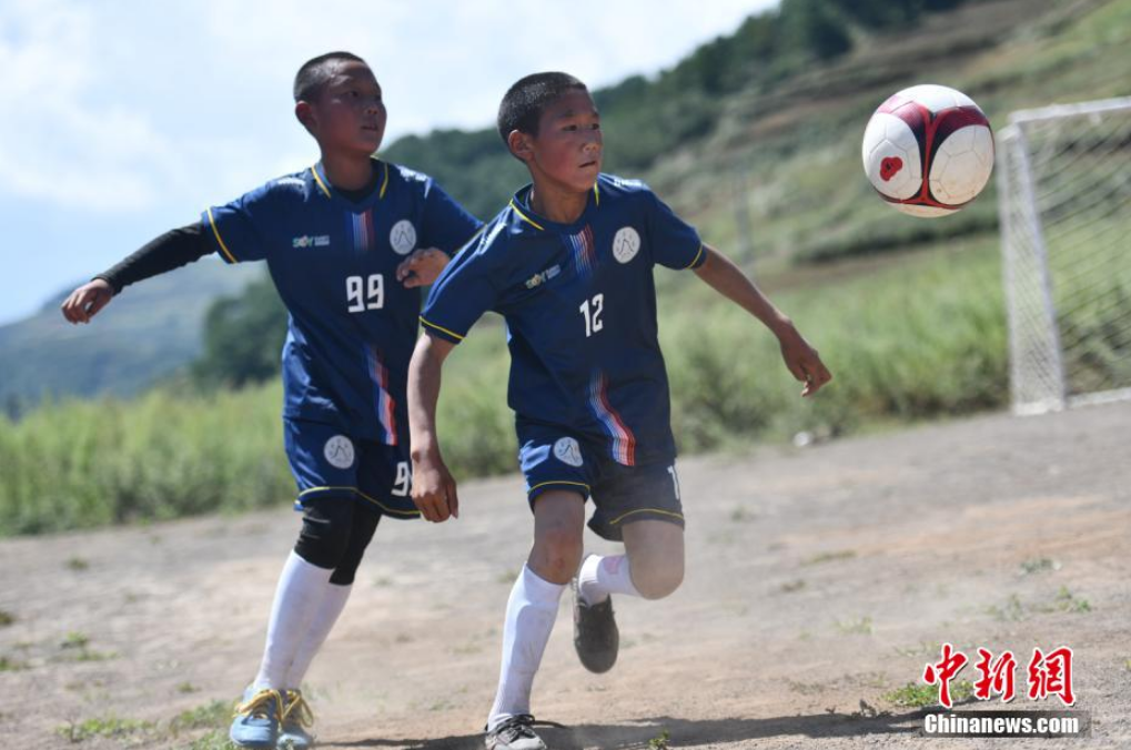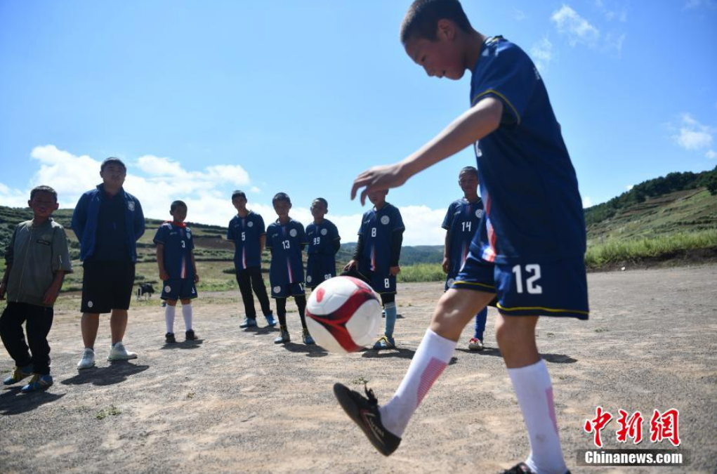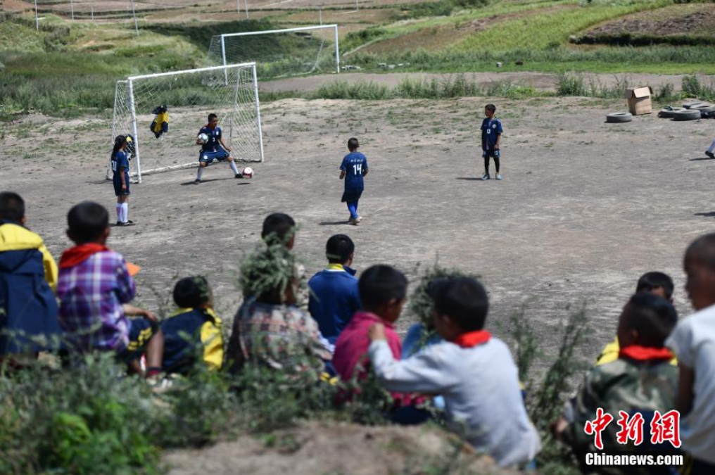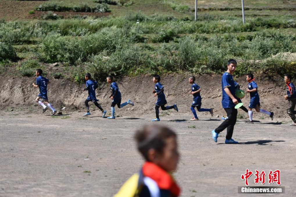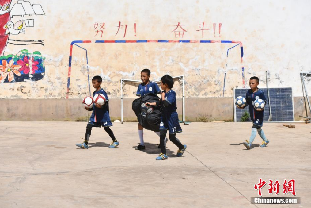 9月2日,四川省涼山彝族自治州昭覺縣瓦吾小學(xué)的彝族孩子們迎來(lái)了新學(xué)期開學(xué)后的第一節(jié)足球課。經(jīng)過(guò)漫長(zhǎng)的暑假,瓦吾小學(xué)兩位支教老師帶領(lǐng)孩子們通過(guò)負(fù)重、體能、比賽等訓(xùn)練,檢驗(yàn)孩子們的足球技能。瓦吾小學(xué)因其特殊的地理位置,被稱為“云端小學(xué)”,目前該學(xué)校255名學(xué)生中踢足球的就超過(guò)了80名,足球?yàn)楹⒆觽兗芷鹆艘蛔ㄏ蛏酵馐澜绲臉蛄骸D為孩子們拿上足球準(zhǔn)備開始訓(xùn)練。張浪 攝
