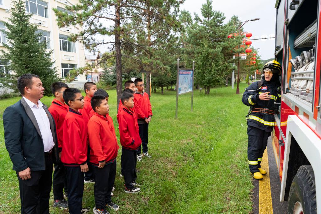 9月6日,在北極鎮(zhèn)中心學(xué)校,馬建國(guó)和學(xué)生一起上消防知識(shí)“開(kāi)學(xué)第一課”。新華社記者謝劍飛 攝