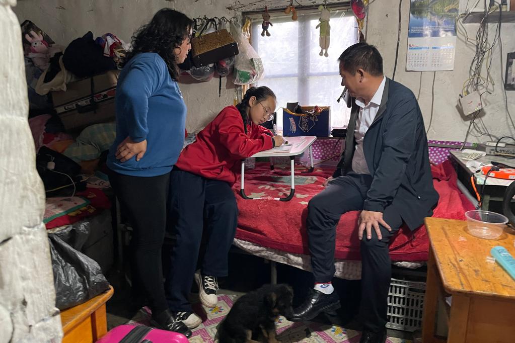 9月6日,在漠河市北極鎮(zhèn)北極村,馬建國(guó)到學(xué)生家中家訪。新華社記者楊思琪 攝