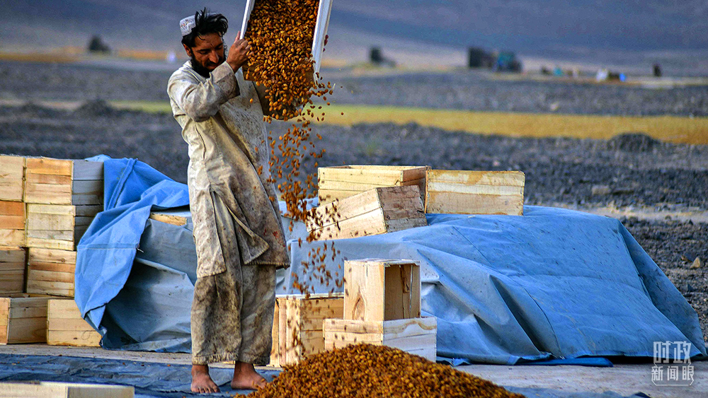 △2021年9月6日,阿富汗坎大哈,當(dāng)?shù)剞r(nóng)民正在制作葡萄干。(圖/視覺中國)