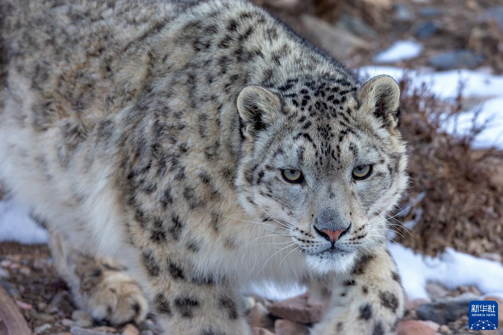 這是2018年4月14日在祁連山國家公園體制試點區(qū)青海片區(qū)拍攝的雪豹。新華社發(fā)(鮑永清攝)