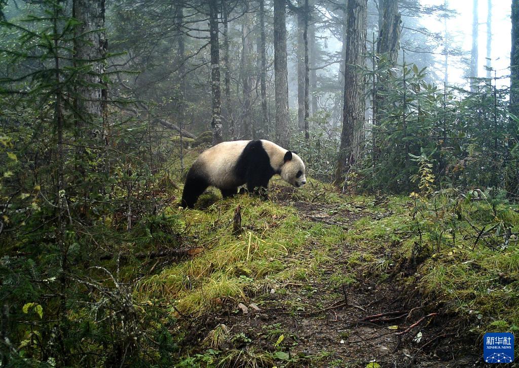 這是大熊貓國家公園甘肅白水江片區(qū)的紅外相機拍攝到的野生大熊貓活動畫面(資料圖片)。新華社發(fā)(甘肅白水江國家級自然保護區(qū)管理局供圖)