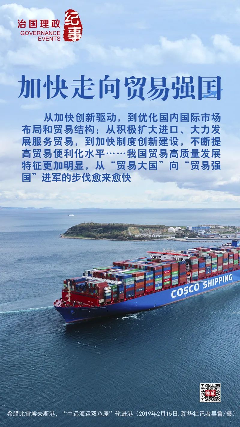◇ 從加快創(chuàng)新驅(qū)動,到優(yōu)化國內(nèi)國際市場布局和貿(mào)易結(jié)構(gòu);從積極擴(kuò)大進(jìn)口、大力發(fā)展服務(wù)貿(mào)易,到加快制度創(chuàng)新建設(shè),不斷提高貿(mào)易便利化水平……我國貿(mào)易高質(zhì)量發(fā)展特征更加明顯,從“貿(mào)易大國”向“貿(mào)易強(qiáng)國”進(jìn)軍的步伐愈來愈快