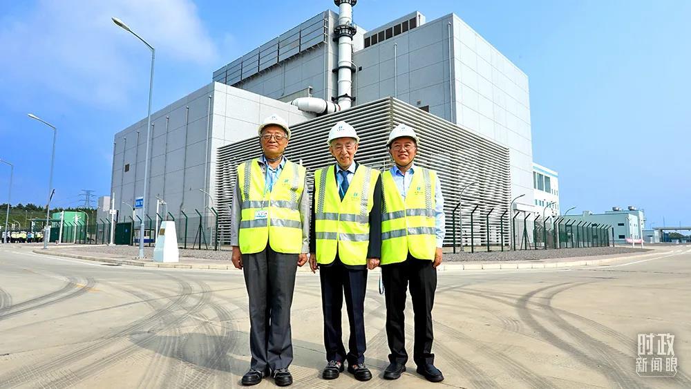 △2021年9月12日,王大中(中)、吳宗鑫(左)、張作義(右)在山東石島灣高溫氣冷堆示范工程現(xiàn)場(chǎng)。(資料圖)