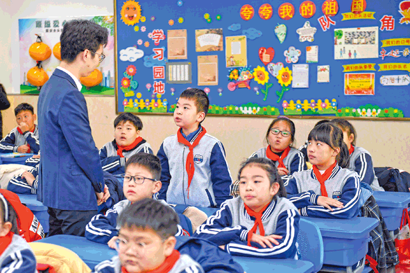 12月3日,在湖州市月河小學(xué)教育集團湖東校區(qū),湖東街道邀請律師志愿者講解憲法知識,與學(xué)生互動。在國家憲法日來臨之際,浙江省湖州市吳興區(qū)組織開展憲法主題教育宣傳活動,走進社區(qū)、學(xué)校宣講憲法知識。新華社記者黃宗治攝