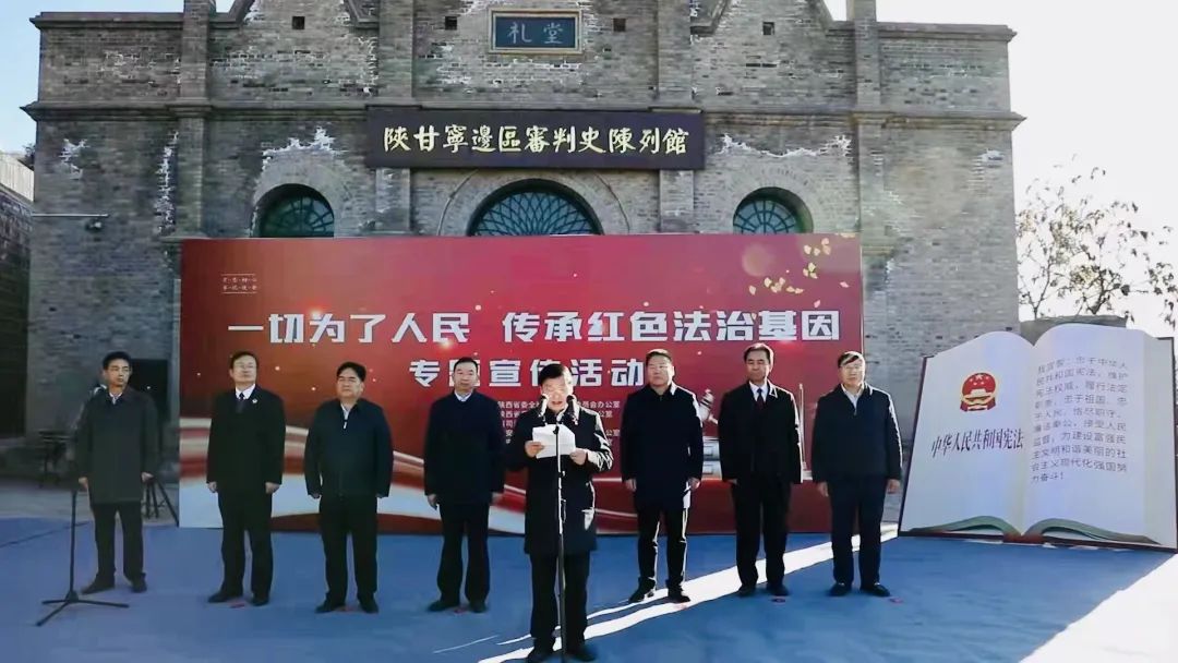 11月30日下午,由司法部普法與依法治理局指導(dǎo),中共陜西省委依法治省辦、省委普法辦、省司法廳主辦,延安市中級(jí)人民法院、延安市司法局承辦的“一切為了人民—傳承紅色法治基因”專(zhuān)題宣傳活動(dòng)在陜甘寧邊區(qū)高等法院舊址舉辦。