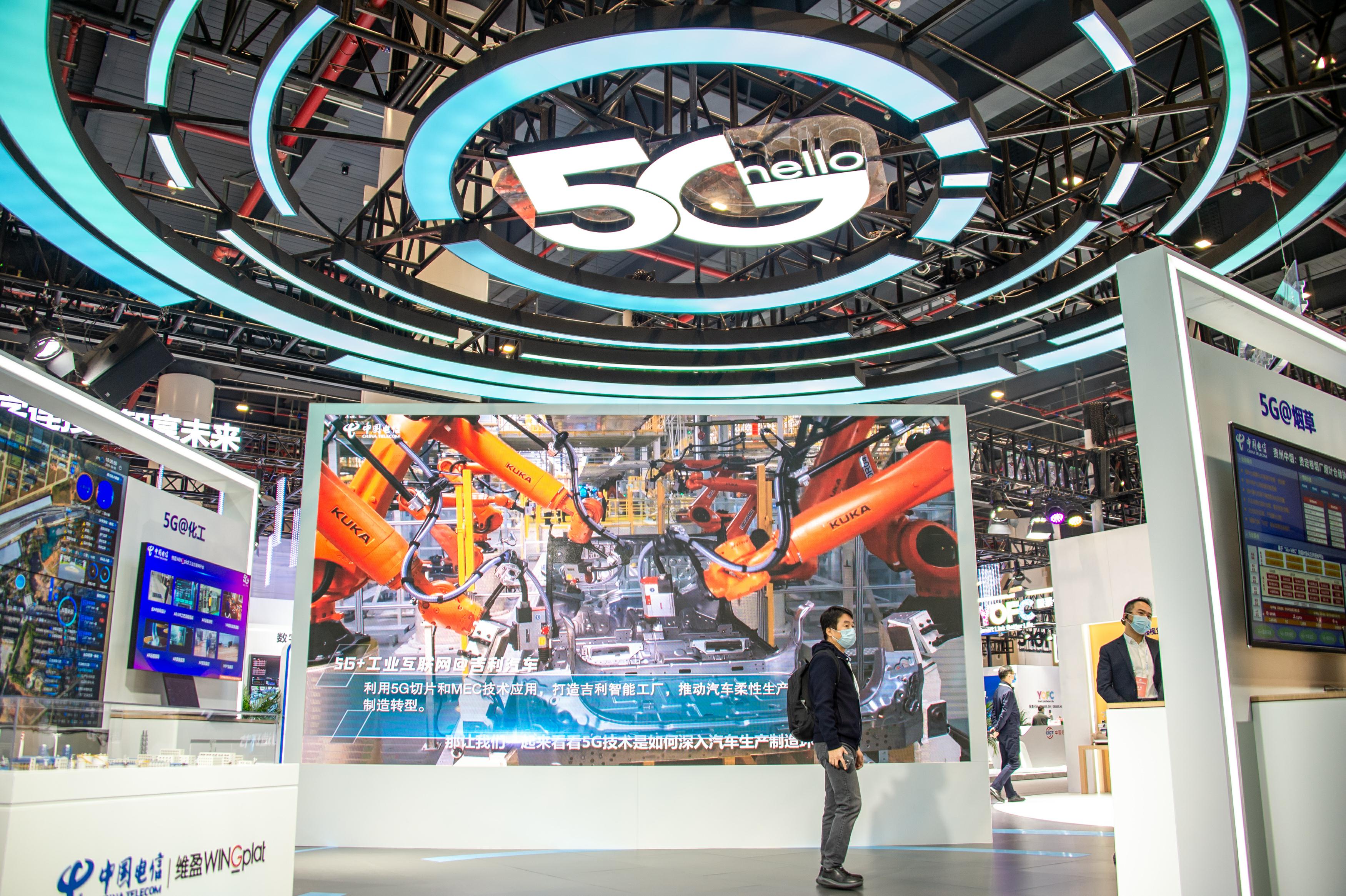 這是11月20日在位于武漢的中國光谷科技會展中心拍攝的“5G+工業(yè)互聯(lián)網(wǎng)成果展”現(xiàn)場。新華社發(fā)(伍志尊 攝)