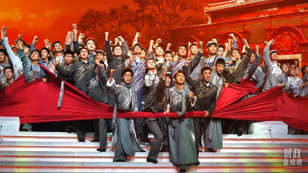 △慶祝中國(guó)共產(chǎn)黨成立100周年文藝演出《偉大征程》,第一篇章“浴火前行”演出片段。(總臺(tái)央視記者魏幫軍拍攝)