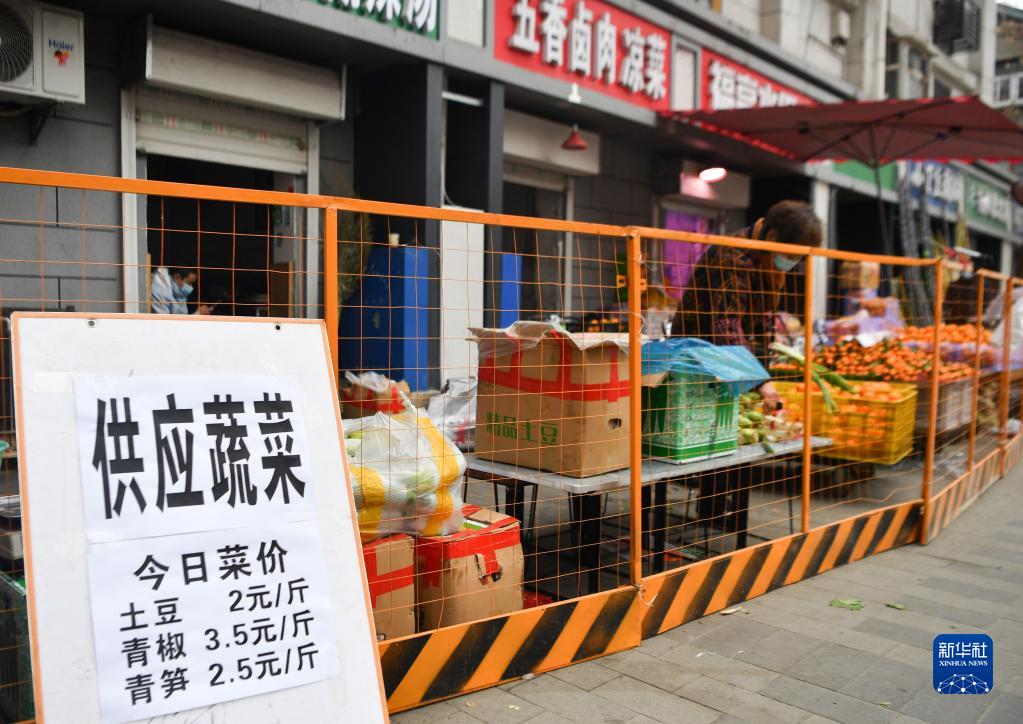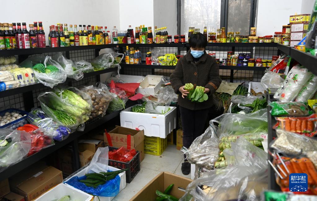 12月23日,西安市新城區(qū)一小區(qū)住戶(hù)在小區(qū)超市買(mǎi)菜。新華社記者 劉瀟 攝