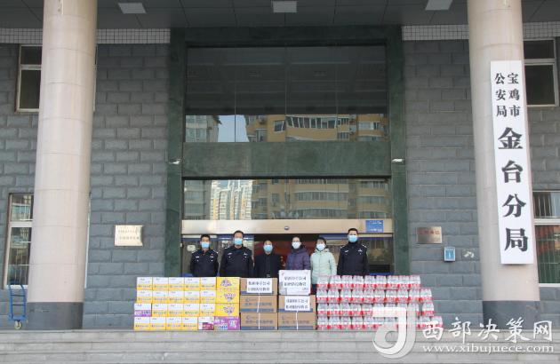 西部決策網(wǎng)訊(記者帥華鋒 通訊員 寧鵬)疫情無情,人間有愛!12月29日下午,寶雞市鼎新印章制作有限公司白建莉經(jīng)理一行4人來到寶雞市金臺公安分局,為金臺分局一線民輔警捐贈價值1萬余元防疫物資,助力金臺公安抗擊疫情。受副區(qū)長、分局黨委書記、局長鄒天虎委托,分局黨委委員、副局長陳永亮,分局黨委委員常廣利,警務(wù)保障室主任路軍縣接受愛心企業(yè)的捐贈。