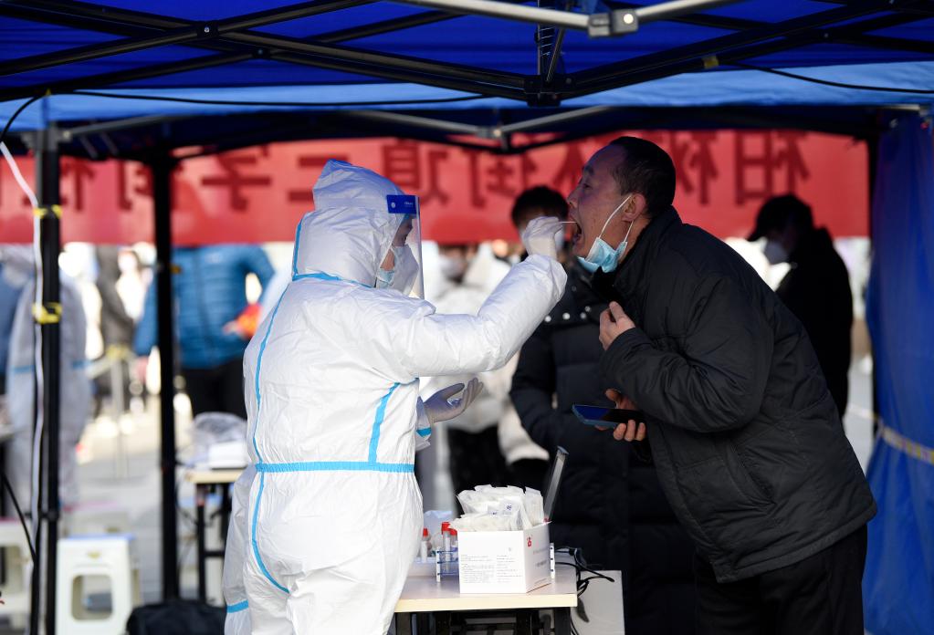 12月17日,市民在西安市碑林區(qū)柏樹林街道三學街社區(qū)核酸檢測點進行核酸檢測。新華社記者 劉瀟 攝