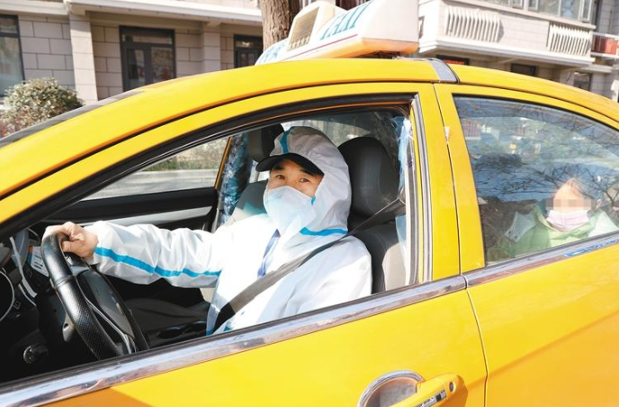 連日來,我市不少出租車司機奔波在抗疫一線,承擔核酸樣本轉(zhuǎn)運、送醫(yī)送藥、拉載特需人群出行等工作。圖為一位出租車司機將就診乘客送達西安市醫(yī)學院第二附屬醫(yī)院。 (記者 翟小雪 攝)