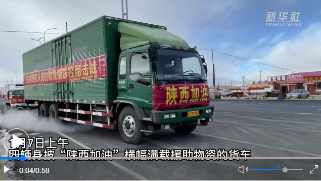 4輛滿載援助物資的卡車從西藏阿里地區(qū)駛向陜西省。(受訪者供圖)