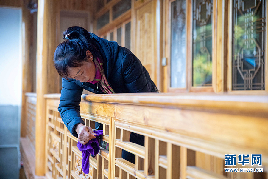 羅愛艷打掃客棧(攝于2021年12月4日)。新華網(wǎng) 趙普凡 攝