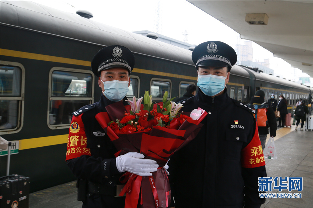 今年59歲的老汪是安康鐵路公安處乘警支隊的老乘警。1988年參加公安工作的他在紫陽站派出所工作了13年。2001年調(diào)入乘警支隊,在乘警崗位上一待就是21年。而今年的春運對老汪來說有著特殊的意義,春運首日也是老汪最后一趟值乘。在安康站始發(fā)前,支隊政委呂昭琦專程送來鮮花表示對老汪多年工作的感謝。已堅守34個春運,用老汪的話來說,自己沒有過轟轟烈烈的大事,只是做好本職的工作,從沒有對不起過頭頂?shù)木铡?/p>