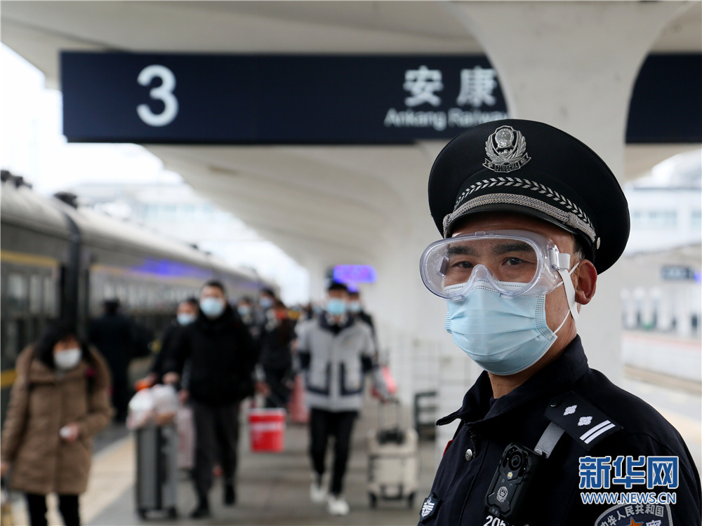 2022年1月17日列車始發(fā)前,乘警汪保山在站臺上組織旅客