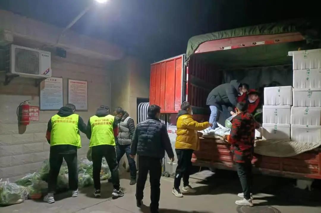 志愿者們?cè)诎徇\(yùn)生活物資。新城區(qū)委組織部供圖