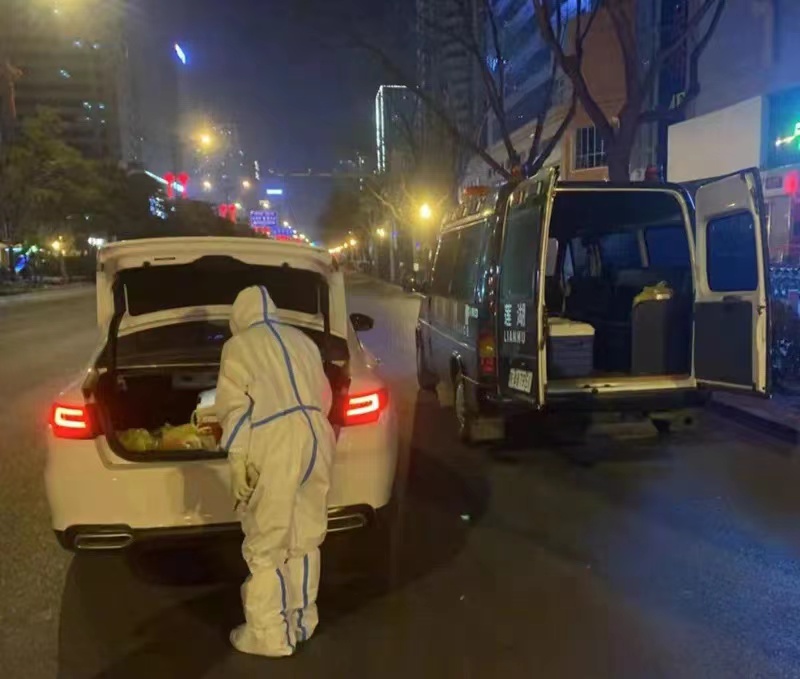 疫情之初,街道核酸檢測(cè)樣本的打包和轉(zhuǎn)運(yùn)工作任務(wù)艱巨,施煜被安排參與轉(zhuǎn)運(yùn)工作。經(jīng)過(guò)一系列嚴(yán)格的崗前培訓(xùn)后他開(kāi)始上崗。收集轉(zhuǎn)運(yùn)核酸樣本的過(guò)程中需要二級(jí)防護(hù),這期間需要吃飯喝水的話(huà)就得更換一套新的防護(hù)服,為了節(jié)省下一套防護(hù)服,施煜和他的同事們都選擇在工作中不吃不喝,兩頓飯之間經(jīng)常間隔十幾個(gè)小時(shí)。
