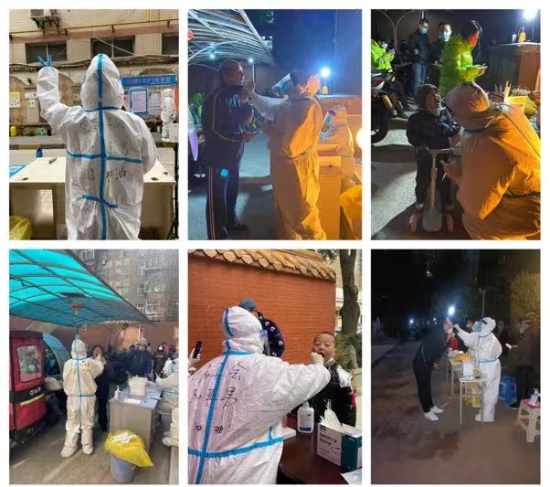孫亞男在社區(qū)各個(gè)地點(diǎn)做核酸檢測(cè)。蓮湖區(qū)委組織部供圖