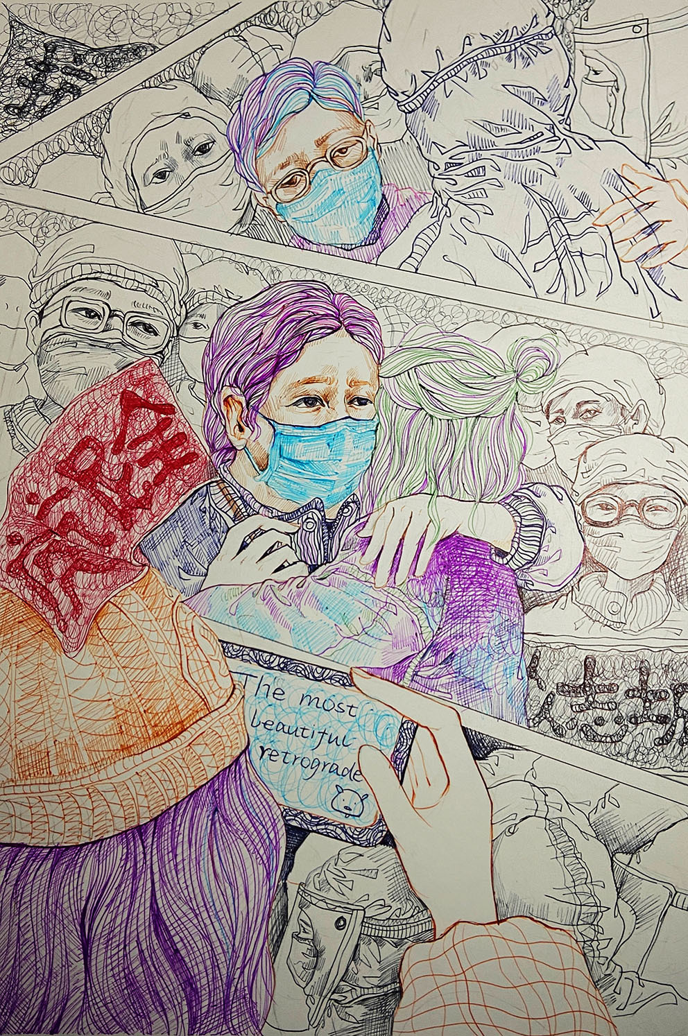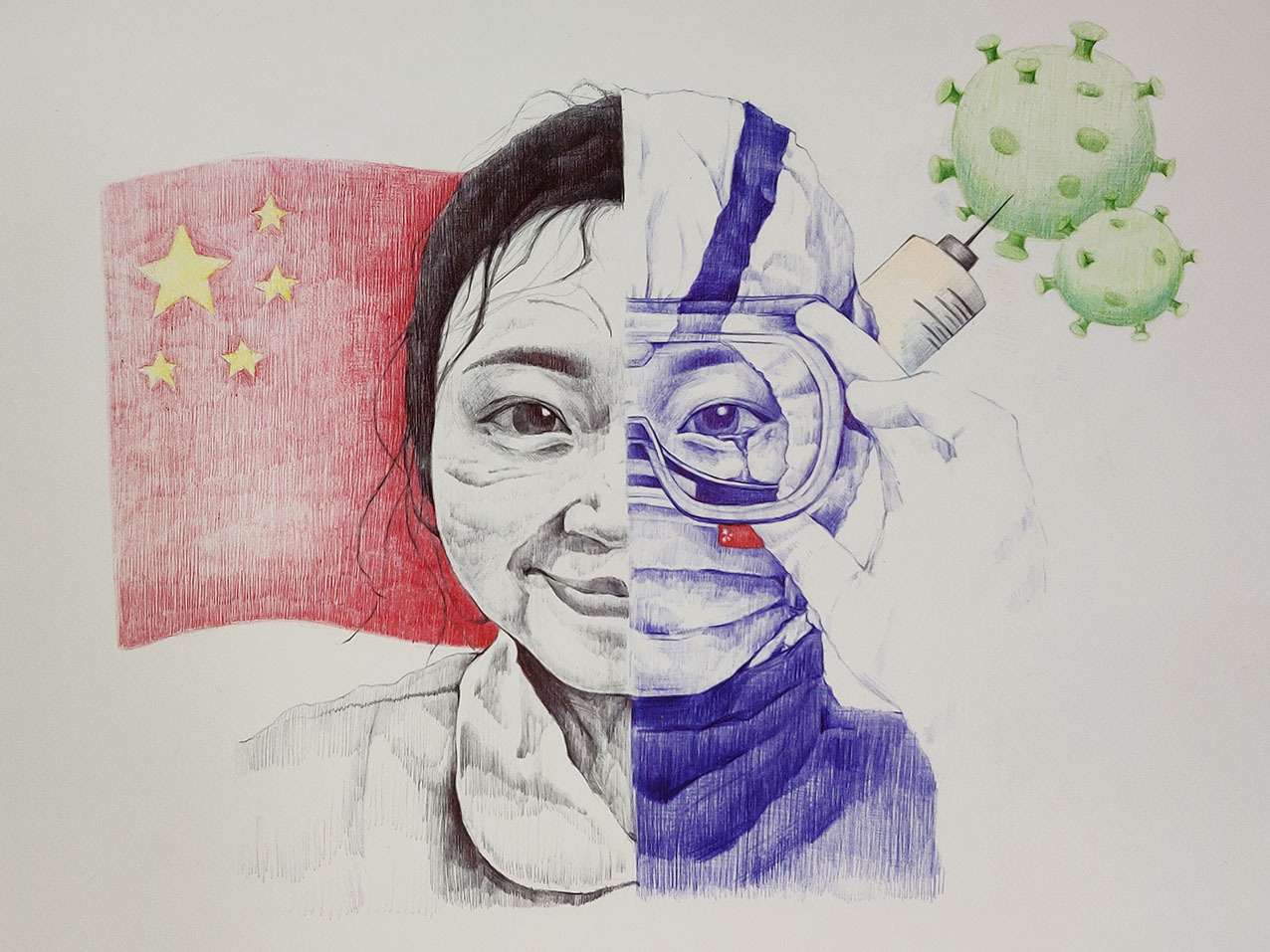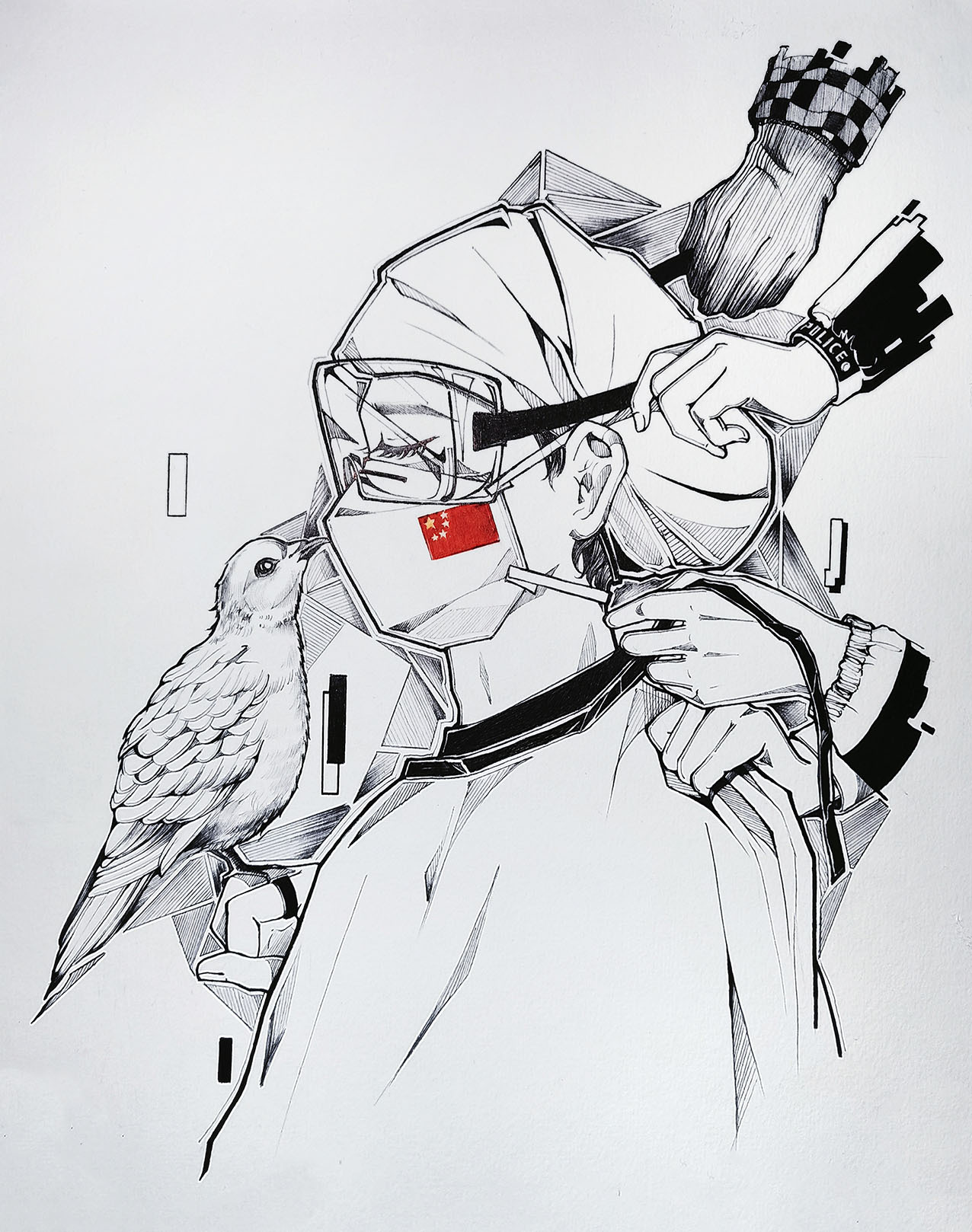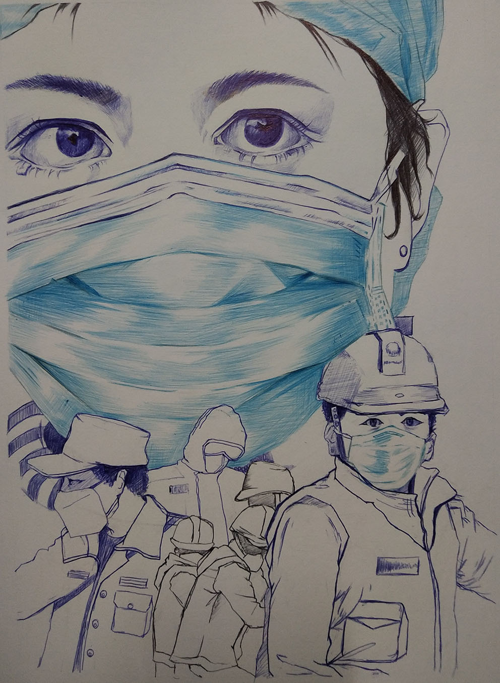 2021年12月,新冠肺炎疫情在西安突然暴發(fā),面對(duì)突如其來(lái)的疫情和嚴(yán)峻復(fù)雜的防控形勢(shì),在加強(qiáng)落實(shí)疫情防控、保障師生健康的同時(shí),西安工程大學(xué)服裝與藝術(shù)設(shè)計(jì)學(xué)院積極應(yīng)對(duì),組織全院師生有序、規(guī)范開(kāi)啟2021年秋季期末課程結(jié)課的線(xiàn)上教學(xué)。任課教師及時(shí)調(diào)整結(jié)課作業(yè)主題,充分利用視覺(jué)傳達(dá)設(shè)計(jì)專(zhuān)業(yè)特點(diǎn),組織同學(xué)們嚴(yán)謹(jǐn)認(rèn)真、激情飽滿(mǎn)地用畫(huà)筆以藝抗疫,致敬最美逆行者!