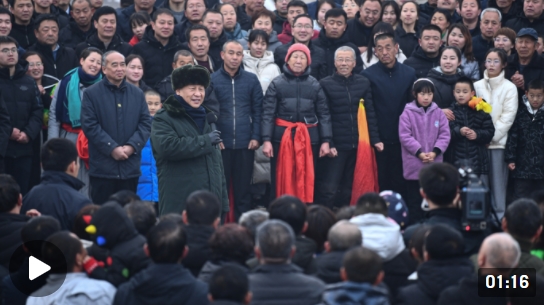 1月26日下午,習(xí)近平總書記來到山西省汾西縣僧念鎮(zhèn)段村考察調(diào)研。在村文化廣場上,村民們打起威風(fēng)鑼鼓、扭起秧歌歡慶佳節(jié)。習(xí)近平向全國各族人民、向港澳臺同胞和海外僑胞致以美好的新春祝福,祝福大家身體健康、工作順利、闔家幸福、虎年吉祥!祝愿偉大祖國山河錦繡、風(fēng)調(diào)雨順、國泰民安、繁榮富強(qiáng)!
